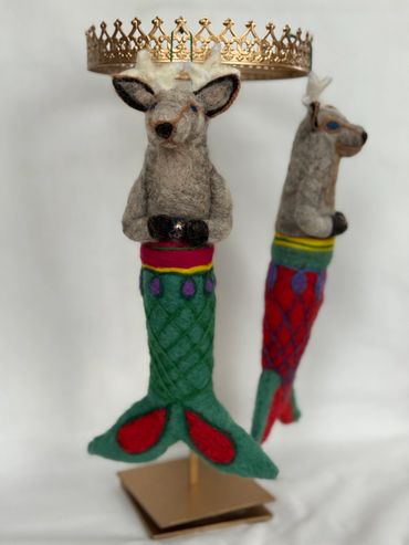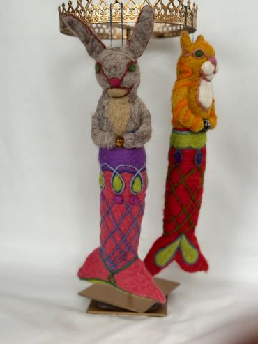 Felted ornaments for holidays or any day and everyone (but not babies or pets.) Enjoy a discount on these few creatures still looking for forever homes.